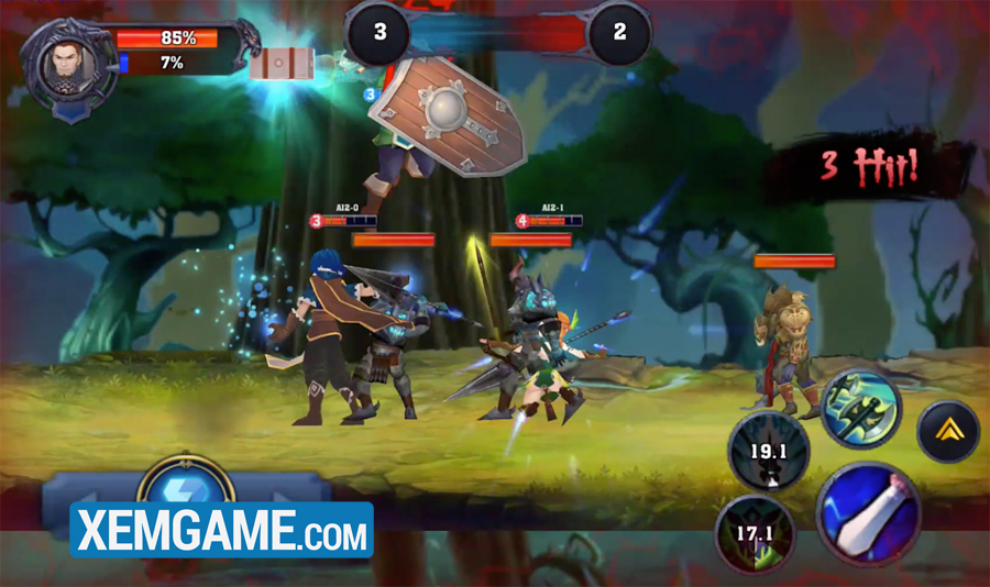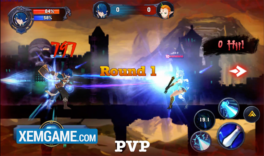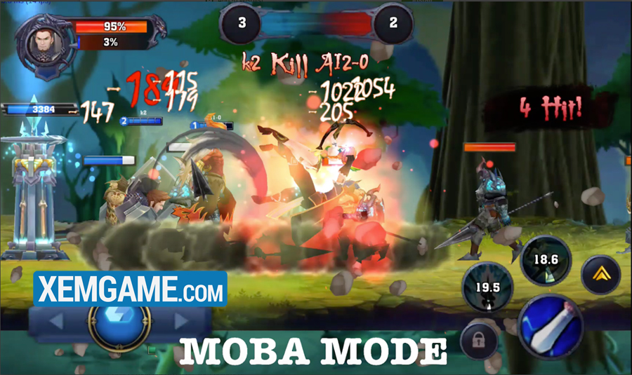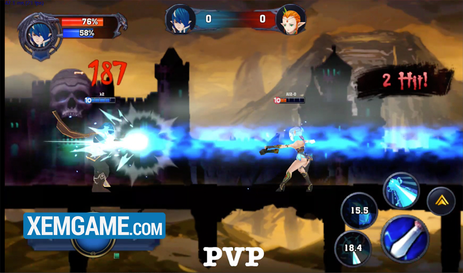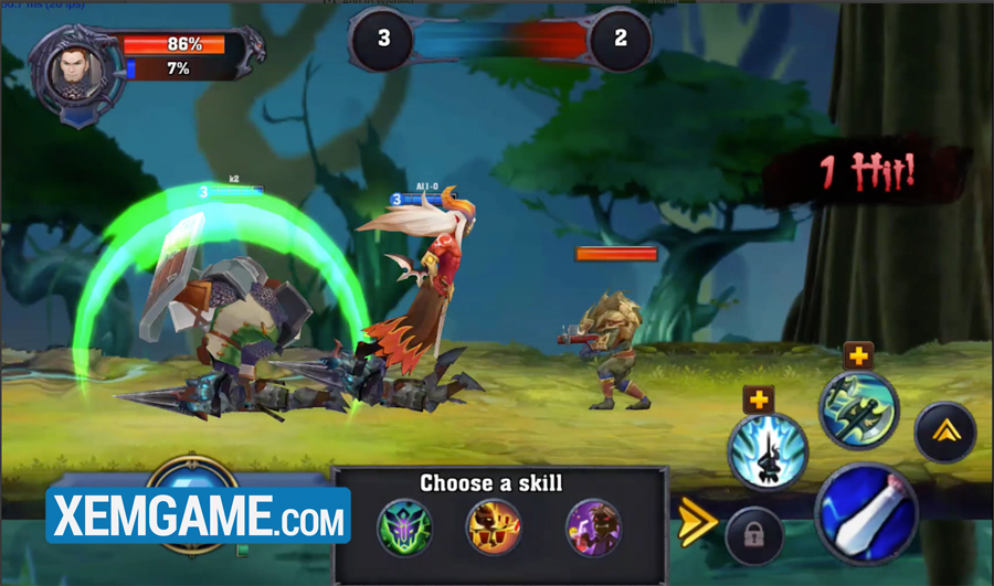 Game có 2 chế độ chơi mạng chính là 1v1 và 2v2 (MOBA). Trong 1v1 thì người chơi sẽ được mở khóa hết các skill để thoải mái đấu solo kẻ thù, còn 2v2 thì môi trường của game sẽ rộng hơn và bạn buộc phải phối hợp cùng đồng đội để đánh gục 2 tướng của kẻ thù.