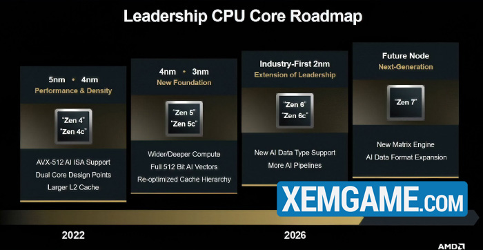 Các thông tin rò rỉ về AMD Zen 7 từ lâu đã ám chỉ đây chính là kiến trúc sẽ cung cấp sức mạnh cho các thế hệ CPU tương lai của AMD. Tuy nhiên, hôm nay đánh dấu lần đầu tiên AMD chính thức xác nhận sự tồn tại của Zen 7 và sẽ kế thừa dòng CPU Zen 5 hiện tại và dòng Zen 6 sắp ra mắt.