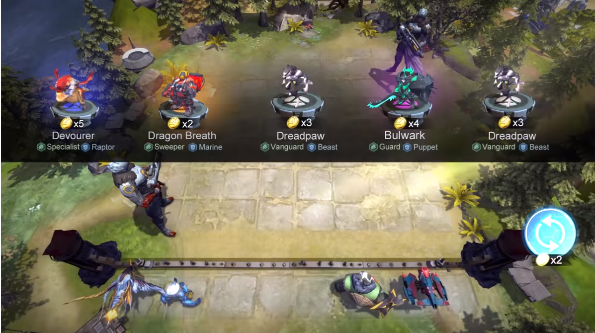 Cũng theo phong cách của Auto Chess người chơi sẽ xây dựng đội quân bàn cờ của mình bằng cách sử dụng tiền để mua lính và với 3 quân cờ giống nhau sẽ nâng cấp lên quân cờ mạnh hơn. Game cũng có những Class và tộc khác nhau để kết hợp hiệu ứng thú vị không thua gì DOTA 2 Auto Chess.