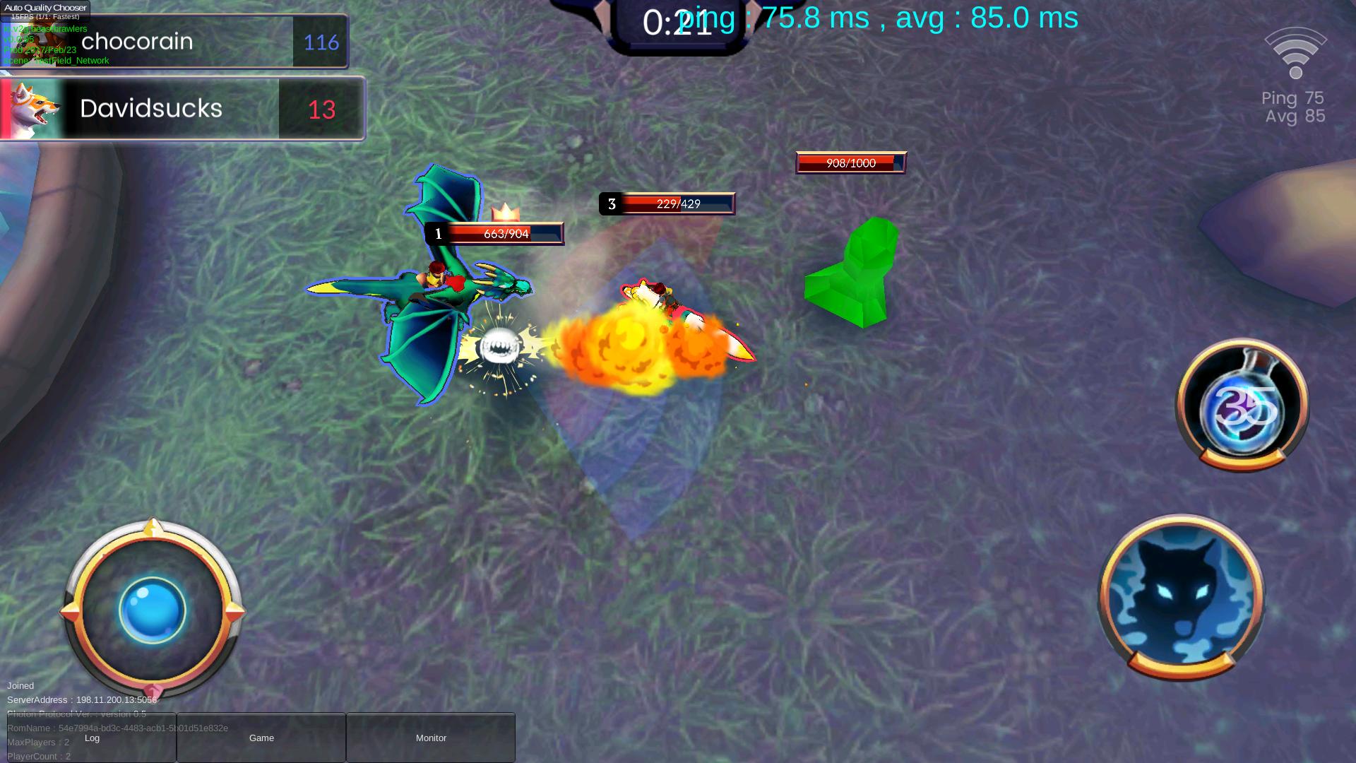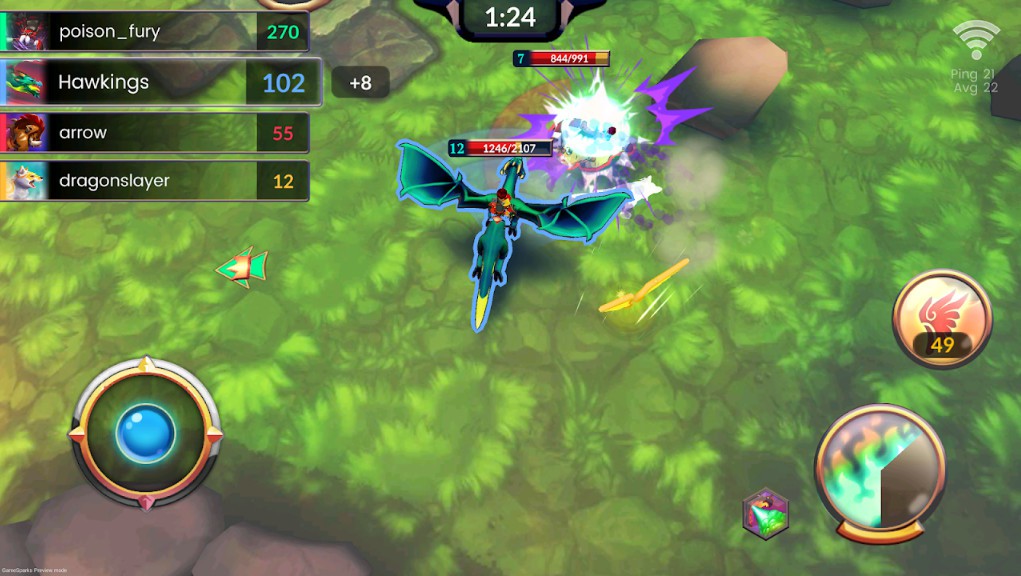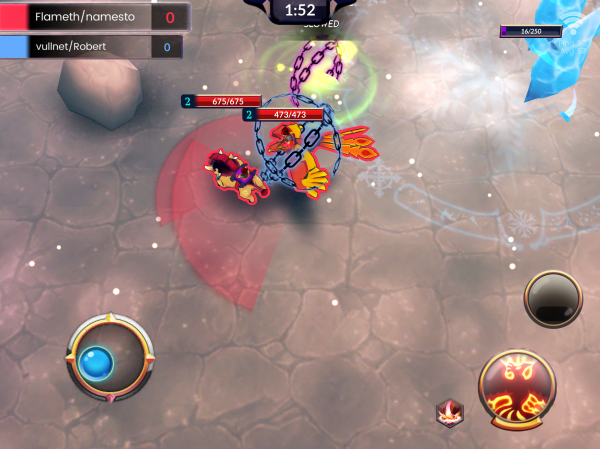 Một khi người chơi chọn quái thú của mình, họ có thể tự do di chuyển xung quanh đấu trường để hoàn thành các mục tiêu. Các điều khiển ở đây khá hợp lý. Có một phím điều khiển ảo để di chuyển và chỉ cần một vài nút trên màn hình để kích hoạt khả năng đặc biệt hoặc vật phẩm tiêu hao. Để tấn công, người chơi chỉ cần di chuyển quái thú của mình đủ gần đối thủ và họ sẽ bắt đầu gây sát thương ngay lập tức.