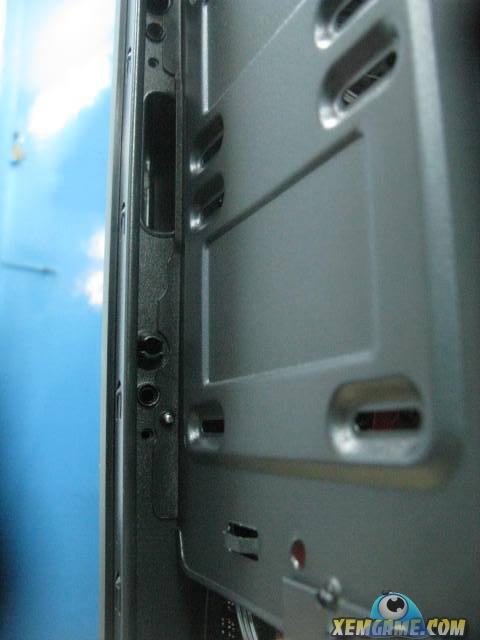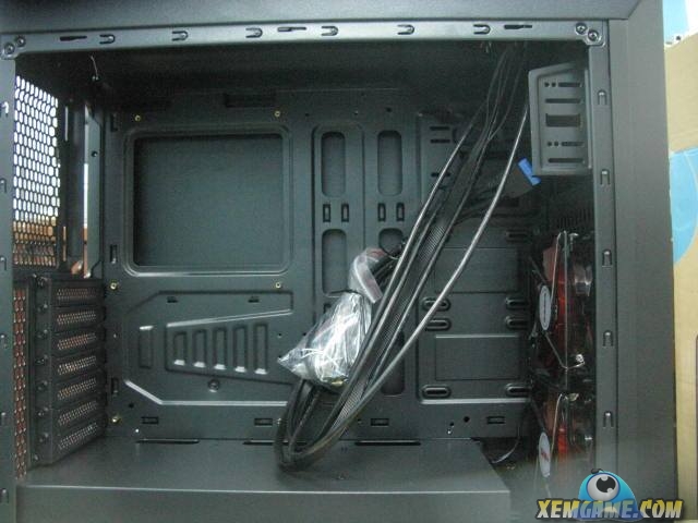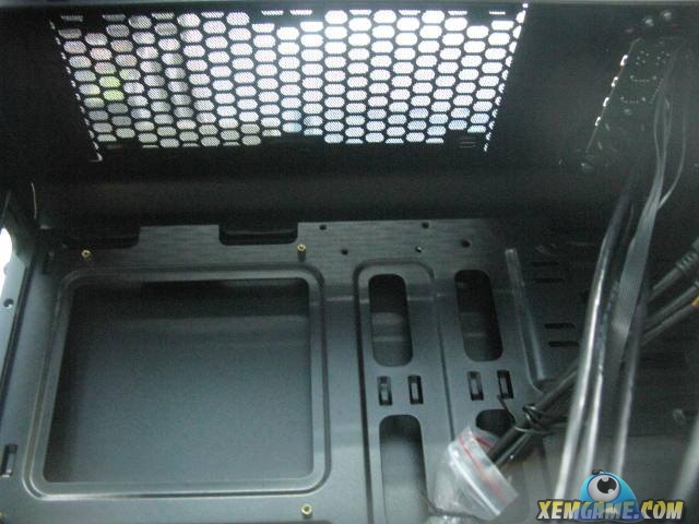 Mặt sau của case như đã nhắc lúc nãy là không hề dập nổi tạo thêm không gian, tuy nhiên khi tháo ra thì mình đã hiểu lý do. Thứ nhất là khu vực PSU được thiết kế khá rộng rãi và đủ sức giấu bớt dây dư đối với các PSU không phải Modular. Còn nếu không? Sama cũng đã thiết kế mặt sau có chiều rộng dày 1.5cm đủ sức bạn giấu bất kỳ dây gì mà không gặp khó khăn. Mình còn chẳng cần dây siết để cố định dây mà cứ thế nhét bớt phần dư vào chỗ trống cạnh khay HDD là xong.
