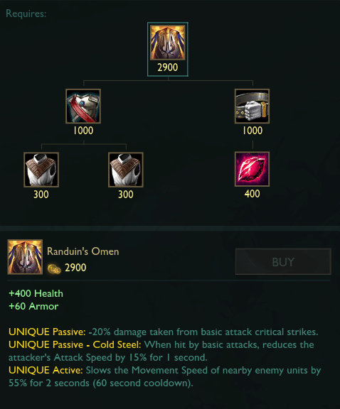 - Nội tại DUY NHẤT – Thorns: Khi nhận phải đòn đánh thường của tướng địch, phản lại 25 sát thương phép, gây hiệu ứng Vết Thương Sâu lên kẻ tấn công trong vòng 1 giây.