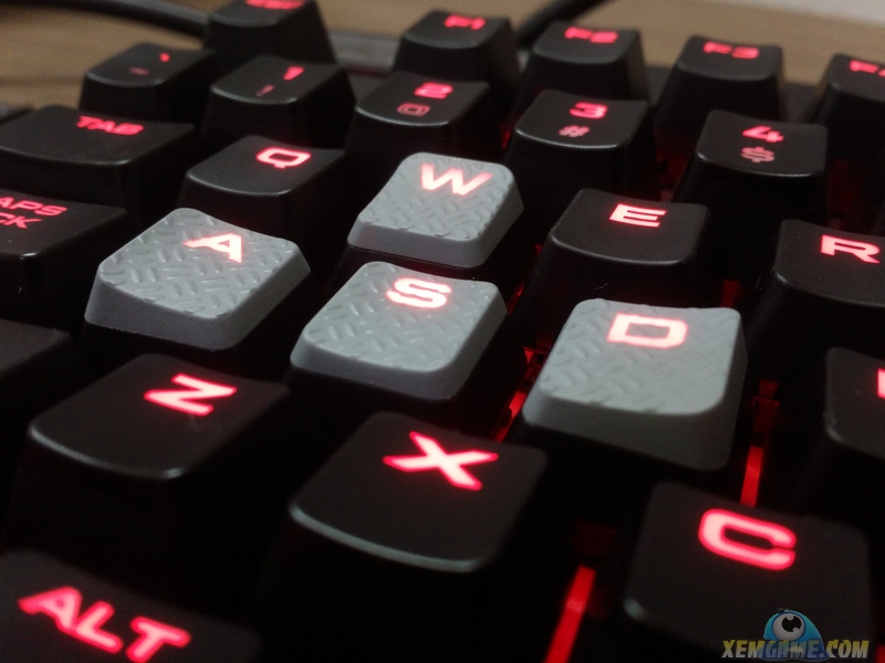 Giờ thì tới thời khắc trải nghiệm, như đã nói bên trên, Corsair sử dụng các nút cơ bản với kiểu nhựa bóng khiến bàn phím dễ dơ với người sử dụng có mồ hôi tay ra nhiều. Bản thân mình mỗi khi sử dụng tầm 2-3 tiếng lại phải lau 1 lần không thì bẩn lắm. Ngoài ra cũng lưu ý một chút, bộ phím hỗ trợ của MOBA và FPS sẽ dư ra 2 bộ nút chữ W và chữ D. Bạn cần cẩn thận lắp đúng mẫu chẳng hạn chơi MOBA thì không thể lắm chữ W hoặc chữ D của FPS và ngược lại.
