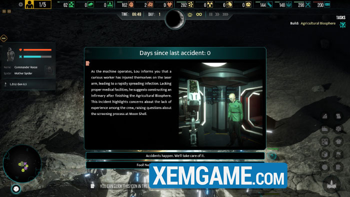 Bạn sẽ cần tuyển dụng thành viên phi hành đoàn mới từ những người sống sót và quản lý nhu cầu của họ để tránh mọi xung đột. Sẽ có rất nhiều tình huống ngẫu nhiên xuất hiện, đòi hỏi kỹ năng ra quyết định mạnh mẽ. Bạn cần nghiên cứu các công nghệ mới để cải thiện Mechaplex và thu thập thêm tài nguyên để đảm bảo sinh tồn của mọi người.