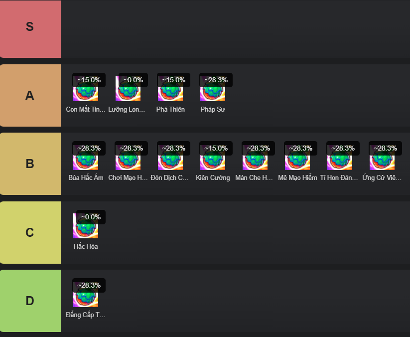 Theo đó, do Akali đã bị nerf khoảng thời gian không thể chọn làm mục tiêu khi dùng kỹ năng nên hướng xây dựng thuần 6 Hộ Vệ để thăng tiến không còn hiệu quả nữa, thay vào đó thì việc bổ sung thêm dàn tướng 4 vàng khỏe sẽ giúp chất lượng đội hình tăng lên và qua đó cho bạn cơ hội vào top 1 tốt hơn.