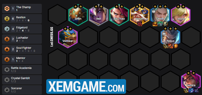 Về trang bị thì Yasuo sẽ cần Đại Bác/Pháo Xương Cá là đương nhiên, Vô Cực (tăng mạnh sát thương) và món cuối có thể flex giữa thêm sát thương hoặc nếu an toàn thì Áo Choàng Bóng Tối/Găng Công Lý/Diệt. Swain sẽ là tướng reroll chung ở 7 nên chúng ta sẽ dồn đồ tank với các món như Giáp Lửa, Giáp Tâm Linh, Giáp Máu… còn lại thì những tướng giá trị khác có thể flex tùy vào các món còn lại.