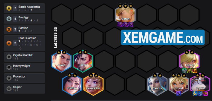 Về cách chơi thì chúng ta slowroll ở 5 để tìm Garen 3 sao, và có thể cả Ezreal trước khi đẩy cấp lên tìm 7 Học Viện còn lại. Trong bài này thì Garen sẽ có bộ đồ như đã nói ở trên là x3 Mũ Thích Nghi hay Dây Chuyền Tự Lực + Thú Tượng + Giáp Máu, Mèo là carry chính hàng sau với những món AP có thể thăng tiến như Quyền Trượng, Leona là tank phụ với các món dư ra.