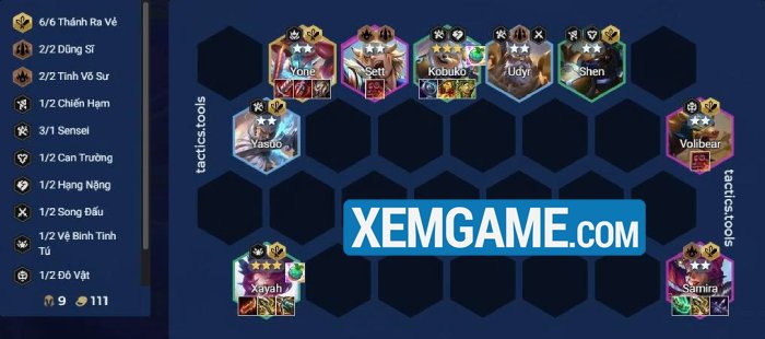 Có một cách để nâng cấp sức mạnh đội hình này chính là cho Yasuo cầm Đại Bác hay Pháo Xương Cá – và qua đó khiến cho những pha Hasagi của vị tướng này an toàn hơn nhiều. Ở cấp độ 9 thì 4 Thánh Ra Vẻ được tăng sức mạnh vừa rồi cũng sẽ góp thêm không ít sức chiến đấu cho đội hình này :