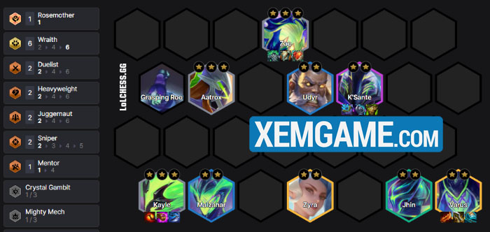 Bài 6 Bóng Ma dưới đây mà không cần điều kiện Lõi kèm theo, chúng ta chỉ việc slowroll bộ tướng Bóng Ma 1 vàng ở 5 sau đó đẩy lên cấp tìm thêm các vị tướng khác là thành bài. Về late thì các 5 vàng flex vào sẽ bổ sung ngưỡng sức mạnh đáng kể :