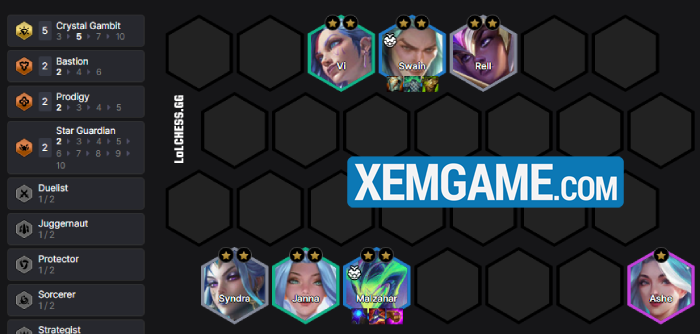 Cách để chơi đội hình này như sau : điều kiện chơi bài này một là đánh win với Pha Lê nổ hũ nhỏ lấy tiền up cấp 7 sớm, 2 là phải có Máy Nhân Bản từ lõi hoặc hũ 170 (hũ khác thì xoay bài khác). Dù sao thì mục tiêu của chúng ta là vòng 3-5 roll xuống để có 5 Pha Lê, Malzahar và Swain 2 sao để giữ bàn :
