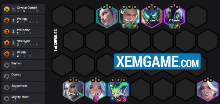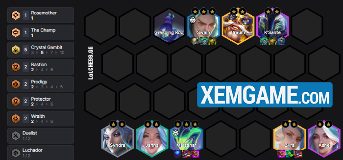 Về Trái thức Tỉnh thì Malzahar luôn là Bẫy Độc Noxus vì nó là mạnh nhất rồi, trong khi Swain và K’Sante sẽ lấy các trái tank tùy ý.