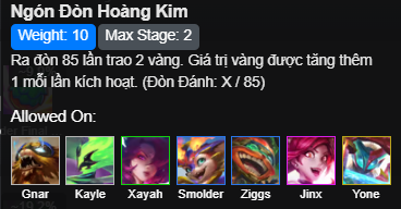 Theo đó, đội hình này flex tối ưu hết sức trang bị có thể, chúng ta sẽ chơi với khung Dũng Sĩ + Gnar ban đầu. Bên cạnh đó không chỉ ưu tiên lấy các Lõi rush cấp mà chúng ta sẽ tiện thể farm kinh tế thêm nhờ Gnar – vị tướng có khá nhiều Thức Tỉnh farm vàng đầu game như Bàn Tay Vàng hay Ngón Đòn Hoàng Kim :