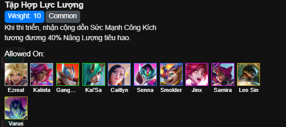 Lý do chọn Tập Hợp Lực Lượng cho Gangplank là vì bể năng lượng thấp, động tác dùng chiêu gọn lẹ và qua đó có thể kích SMCK cực nhanh để rồi có thể thực hiện oneshot ngay cả những tanker khỏe mạnh ở hàng trên.