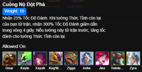 Ở đây chúng ta thấy Kayle cầm Trái Ác Quỷ thứ 2, nhưng lại bị đẩy lên đầu? Là bởi vì nó sẽ cầm Thức Tỉnh Cuồng Nộ Đột Phá – một Thức Tỉnh mang thiên hướng hỗ trợ cho Gangplank dùng chiêu/đánh lẹ hơn nên bị hạ càng nhanh càng tốt :
