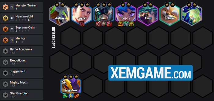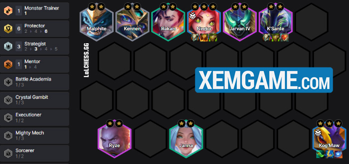 Có lẽ thứ khó khăn nhất khi chơi đội hình này là bộ đồ kén chủ lực dùng tạm ban đầu, và quan trọng nhất là bạn có roll ra được bộ tướng 4 vàng nâng cấp ở cấp 8 để giữ máu hay không.