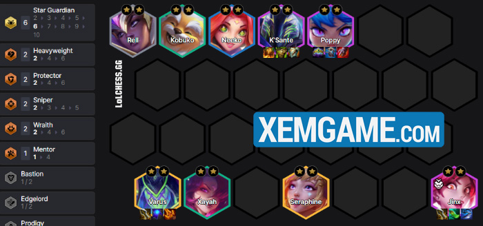 Hiện tại, đội hình Jinx sẽ cắt bớt các Vệ Binh Tinh Tú vô dụng để thêm K’Sante/Kobuko phụ chống chịu và Varus phụ sát thương, trong khi đó Seraphine tiếp tục được buff sát thương ở 15.6 sẽ càng giúp đội hình này mạnh hơn ở late. Tuy vậy thách thức duy nhất là nâng cấp được hết cả đống này mà thôi :