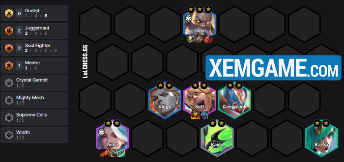 Với nhiều buff như vậy thì chúng đủ mạnh để khiến đội hình này quay trở lại meta, và tất nhiên chúng ta sẽ chọn lựa lối chơi quen thuộc slowroll ở 7 để Udyr 3 sao và có thêm vài tướng phụ trợ nữa (kiểu Viego hay Gangplank/Kaisa) rồi lên 8 bổ sung thêm Ashe kết thúc game đấu.