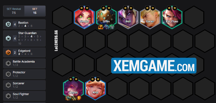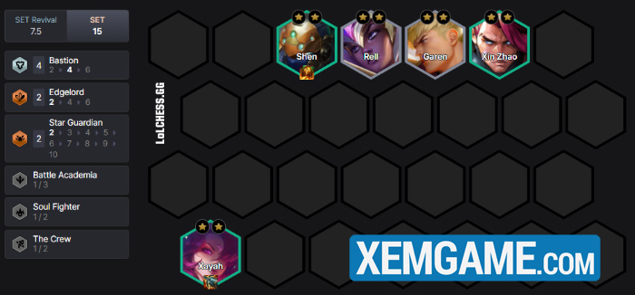 Khởi đầu, chúng ta có thể nghĩ đến bài này khi có Xayah sớm và 1-2 mảnh thành phần ghép đồ ổn áp. Dùng khung Can Trường Thánh Ra Vẻ để def qua giai đoạn này :