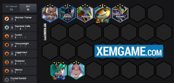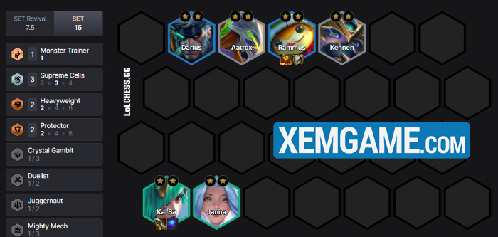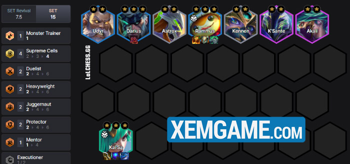 Bên cạnh Malzahar, Rammus còn kết hợp rất tốt với đội hình Hội Tối Thượng đang hot, làm dàn chắn cho Kai’sa và Akali tha hồ xả sát thương. Hãy cùng thử nghiệm bài trên và có cho mình những giai đoạn leo rank mạnh mẽ cuối mùa nhé.