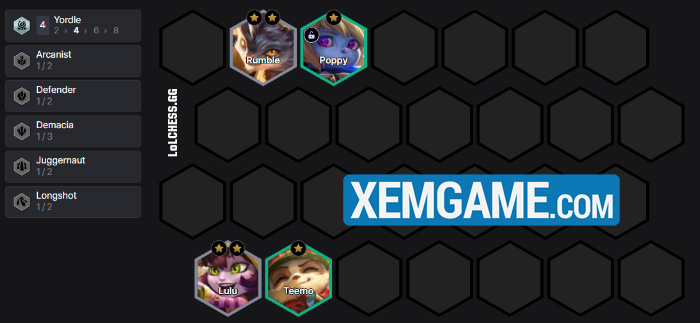 Cụ thể thì chiến thuật này nằm ở việc giữ các Yordle rẻ tiền lại, bạn thậm chí có thể mở khóa Poppy ngay tại 2-1 để có 4 Yordle bằng việc ghép 1 đồ hoàn chỉnh và 1 mảnh cho tướng Yordle bất kỳ. Chiến thuật của chúng ta sẽ bắt đầu từ đây :