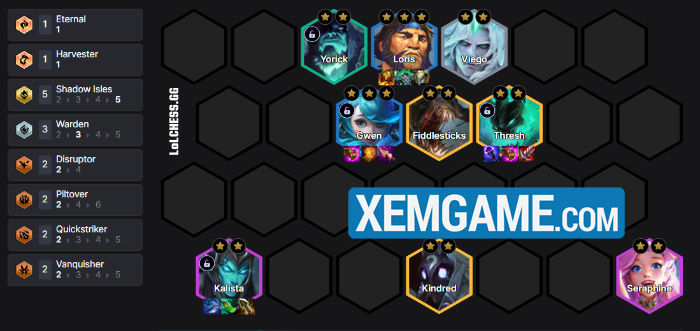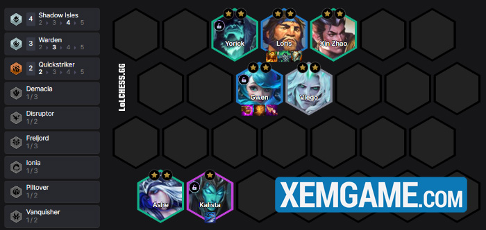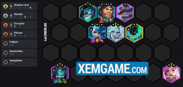 Cấp 6 và 7 nên có cho mình 2 vị tướng chủ chốt là Gwen và Loris, cấp 7 thì slow roll chúng lên 3 sao :