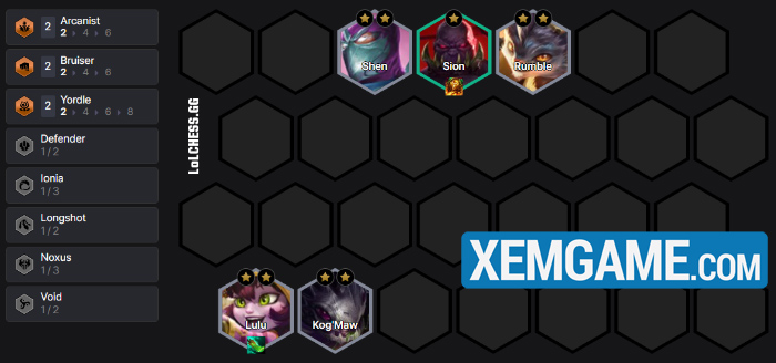 Trong giai đoạn này, hãy đặt Sion hoặc Wukong lên duy nhất ở 2 ô trên trong 1 giao tranh để mở khóa Sett. Up lên 9 và chúng ta sẽ kích slot Ionia còn lại và có một tướng phụ sát thương nữa :