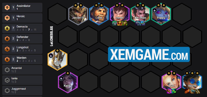 Sau khi 3 sao Vayne, up lên 8 để hoàn thành 7 Demacia và roll xuống để nâng cấp đội hình và mở khóa được cả Kai’Sa và Galio :