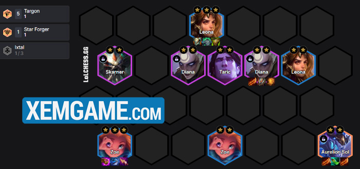 Về cách xây dựng đội hình thì chúng ta chỉ cần bỏ thật nhiều Targon vào, với bộ đôi reroll chính ở 7 là Zoe và Leona. Sau khi hoàn thành thì cấp 9 thì có thể mở khóa thêm Skarner để lấy thêm hiệu ứng cộng giáp bổ trợ cho đội hình :