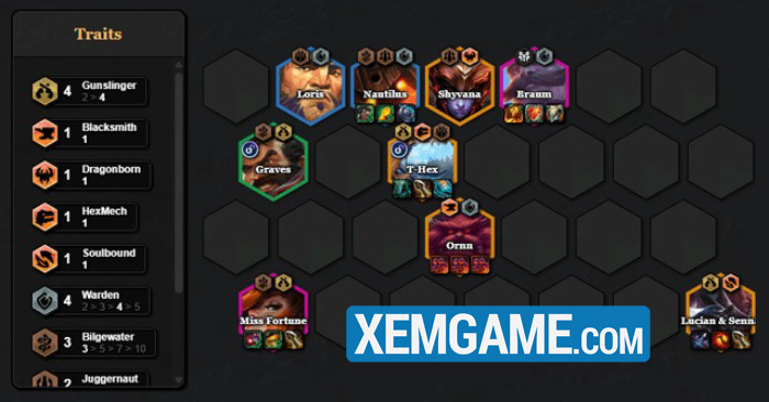 Về trang bị thì chúng ta sẽ ưu tiên cho các tướng Seraphine = Braum, Lissandra và T-Hex trong đó bộ tướng cần ưu tiên Seraphine, Braum T Hex. Seraphine sẽ là Mũ Thích Nghi (tận dụng hiệu ứng Piltover), Quỷ Thư, Trượng Hư Vô, trong khi đó Loris => Braum là các món thuần tank tùy ý, T-Hex sẽ pha trộn giữa đấu sĩ và STVL với Quyền Năng, Vô Cực, Móng Vuốt, Găng Công Lý…. Lissandra, Lucian/Senna, Azir sẽ build đồ sau này tùy thuộc vào việc bạn còn đủ đồ hay không.
