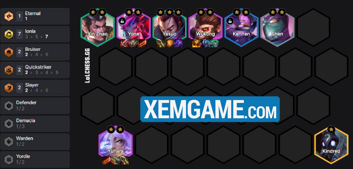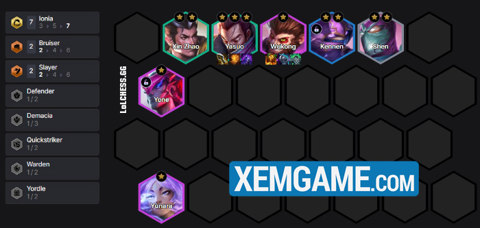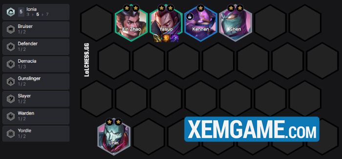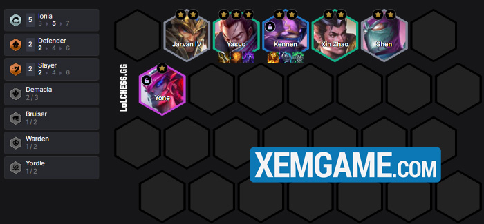 Khởi đầu, chúng ta cứ sử dụng 5 Ionia + Đồ Tể bất kỳ để def. Up lên 6 và roll Yasuo 3 sao nhanh nhất có thể :