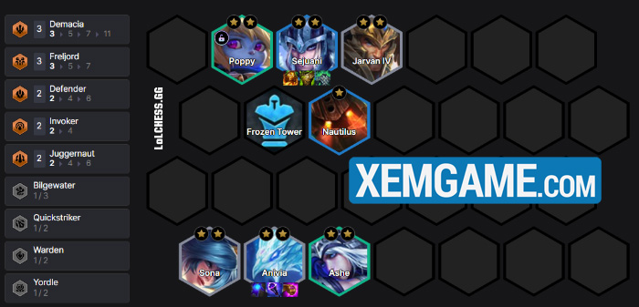Ở chỗ Taric là một slot flex, có thể thậm chí là mở khóa cả Skarner để lấy giáp. Hoặc thêm Cảnh Vệ bất kỳ. Up lên 9 thì chúng ta sẽ có Ornn để farm Tạo Tác và Sona bằng Zilean để có thêm một carry chất lượng nữa :