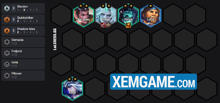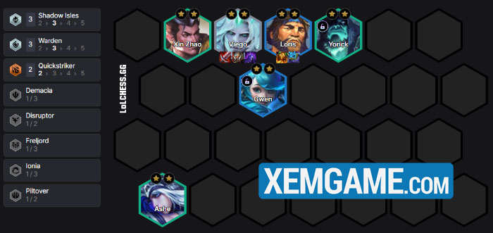 Theo đó, lối đánh Quần Đảo Bóng Đêm hiện tại chỉ là lấy Lõi Anh Hùng của Viego rồi reroll mà thôi, tuy vậy có một cách đánh khác cũng hiệu quả không kém. Theo đó Viego 2* là 1 trong những con tướng 1v def máu tốt nhất ở đầu game nhưng về late thì team Quần Đảo lại đuối vì chất lượng tướng thấp. Vậy thì chúng ta có thể áp dụng form Quần Đảo để def máu lên 9 và xoay sang 9 để có chất lượng tướng mới hợp lý hơn :