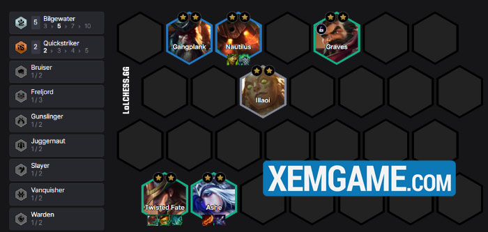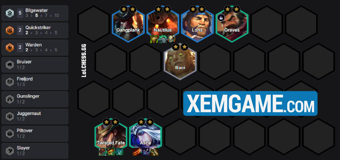 Khởi đầu, chúng ta sẽ bắt đầu với form Bilgewater với các carry đáng chú ý là Twisted Fate trong khi tank chính là Illaoi=>Nautilus :