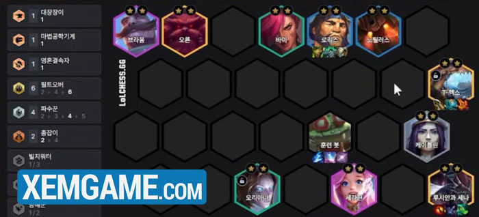 Về sau khi đã mở khóa được T-Hex và có 6 Piltover, thì mục tiêu của chúng ta còn lại là thêm Cảnh Vệ và Lucian để kích Pháo Thủ còn lại :