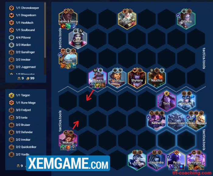 Với việc đặt 1 tank chính theo kiểu này, khủng long sẽ bắn laser vào Ashe và Lissandra và qua đó cho các chủ lực như Yunara hay Ryze thêm chút thời gian để xả sát thương.