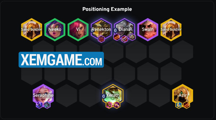Diana Shurima cũng là một đội hình có thể nhét Bard vào vì dù sao chúng ta cũng không cần nhiều Tộc/Hệ. Các lượt roll từ Bard sẽ giúp sớm có Leona 2 sao và tiếp tục giữ hắn lại cho đến vòng 4 để roll xuống hoàn thành đội hình cuối.