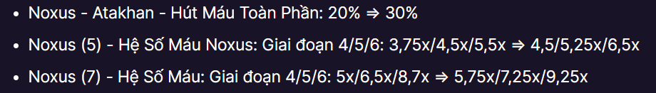 Ngoại trừ một vài trường hợp hiếm hoi như Noxus 3 flex nhiều đội hình nhưng 7 Noxus khá đuối, Noxus là Tộc/Hệ khu vực nhìn chung chưa đạt được nhiều thành công trong bản cập nhật mở màn. ĐTCL 16.2 đã tiến hành buff hoàn loạt các Tộc/Hệ để cân bằng meta lại, trong số đó thì Atakhan từ Noxus đươc tăng chỉ số ở mốc 5 và 7, trong khi Darius và Leblanc trong bộ Noxus cũng có sự nâng cấp đáng kể sức mạnh.