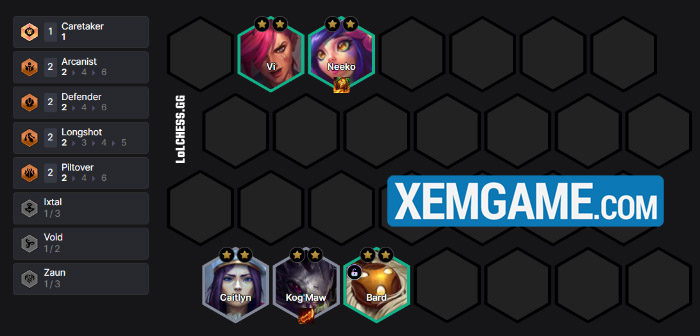 Theo đó, đây là một bài fast 9 nên giai đoạn ban đầu chúng ta cứ flex với những tướng được nâng cấp mà game cho. Nhưng nên tập trung vào Viễn Kích với Caitlyn vì đây là một vị tướng sẽ có mặt trong đội hình cuối cùng của chúng ta.