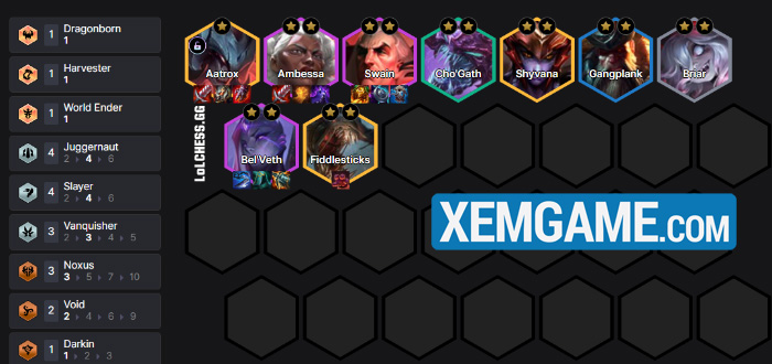 Về lối chơi thì chúng ta sẽ tìm cách fast 8 thật nhanh để roll tướng 4 vàng giữ bàn như Bel’Veth, Ambessa, Swain và cả Aatrox kích hệ, trước khi up 9 và lên sao tất cả chúng để dứt điểm ván đấu. Với sự dẻo dai của Đồ Tể và nhiều mũi tấn công thì đây là một trong những đội hình chủ lực tay ngắn hiếm hoi có thể sử dụng trong meta của 16.3b: