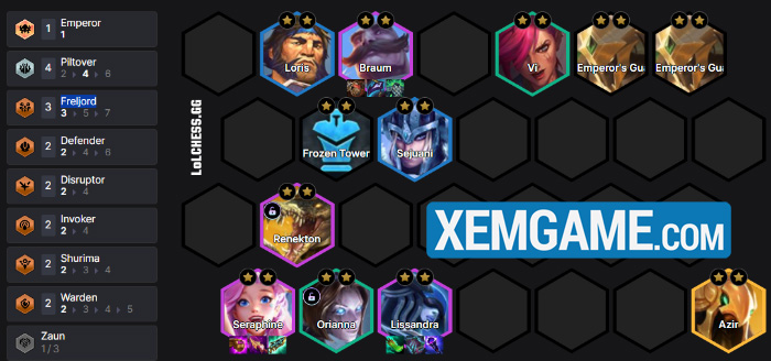 Theo đó, Cột Băng của Freljord cực mạnh khi đi kèm với buff từ các hiệu ứng phù hợp của Piltover như Bánh Răng hay Cổng Gia Tốc. Chúng sẽ tạo nền tảng cho các carry phép thuật chất lượng hàng sau như Seraphine, Lissandra và cả Azir xả sát thương tan nát hàng chắn đối phương.