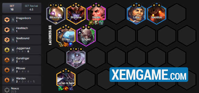Theo đó, kế hoạch của đội hình T-Hex Dũng Sĩ sẽ là roll các Dũng Sĩ 1 vàng như Briar và Blitzcrank lên 3 sao, sau đó cho T-Hex nuốt Briar 3 sao để lấy về cho vị tướng này 100% tỉ lệ chí mạng và qua đó khiến những chùm tia laser chết chóc quay trở lại. Sau khi mở T-Hex với 9 cấp sao Piltover, chỉ cần Seraphine 1 sao và full các Piltover khác lên 2 sao chúng ta có thể lên cấp trở lại: