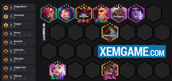 Sau khi farm đủ đồ Ánh Sáng, chúng ta sẽ chuyển đồ sát thương phép bình thường từ Seraphine trở lại và dùng đội hình 4-5 vàng quen thuộc với Mel :