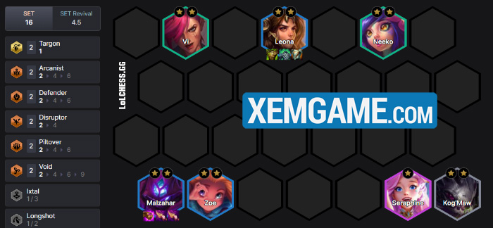 Sau những đợt tăng sức mạnh gần đây cho Leona, Zoe và Malzahar, đội hình này thực sự rất mạnh và có thể trừng phạt những người chơi tham lam fast 9. Và một điều quan trọng là đội hình đặc biệt hiệu quả khi đối đầu với T-Hex, mang đến cho người chơi một lựa chọn anti meta cần thiết.