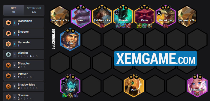 Với dàn 4 vàng nâng cấp, chúng ta up lên 9, bỏ Gwen thêm Azir và bổ sung 5 vàng nữa như Ornn, Fiddlesticks là xong bài :