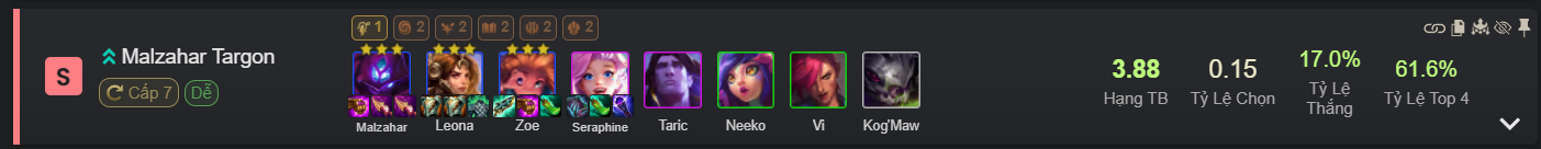 Sau những đợt tăng sức mạnh gần đây cho Leona, Zoe và Malzahar, đội hình này thực sự rất mạnh và có thể trừng phạt những người chơi tham lam fast 9.