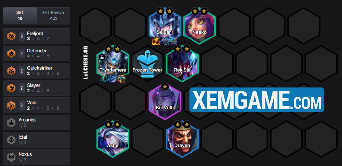 ĐTCL 16.7 đang đến gần nhưng đó chỉ là một bản cập nhật nhỏ mà thôi, trong thời gian đó chúng ta sẽ tiếp tục tìm tòi và nghĩ ra những bài đấu mới thú vị để leo rank. Hôm nay hãy cùng Xemgame tìm hiểu một đội hình cực độc dị Bel’Veth – Lissandra, đảm bảo chưa ai sử dụng trước đây.