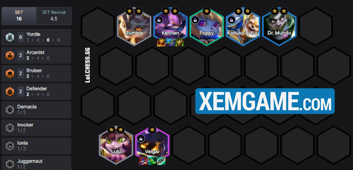 Khởi đầu, chúng ta nên đi theo form Yordle để giữ máu và bàn, flex với các đội hình thường thấy :