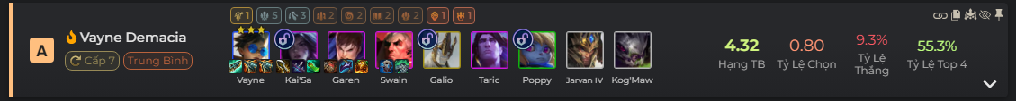 Những thay đổi này đã mở ra một đội hình mới xoay quanh các Viễn Kích và dàn chắn Demacia, bên cạnh đó sức mạnh của Vayne từ 2-3 sao quá đáng kể để giữ bàn trong khi lên cấp 7 luôn luôn đảm bảo có Kai’Sa kích Hệ, giúp đội hình này nhanh chóng up lên 9 để bổ sung sức mạnh.