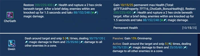 Thay đổi của Gwen và Cho’Gath như sau :