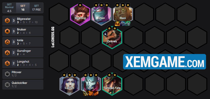 Đội hình này hoạt động vào việc người chơi sẽ reroll bộ tướng 1 vàng như Caitlyn, Jhin, Shen, Illaoi… làm điều kiện trụ ở giữa game. Trước khi up lên 8 để mở hàng loạt tướng 5 vàng đắt giá như T-Hex, Tahm Kench làm điều kiện thắng.
